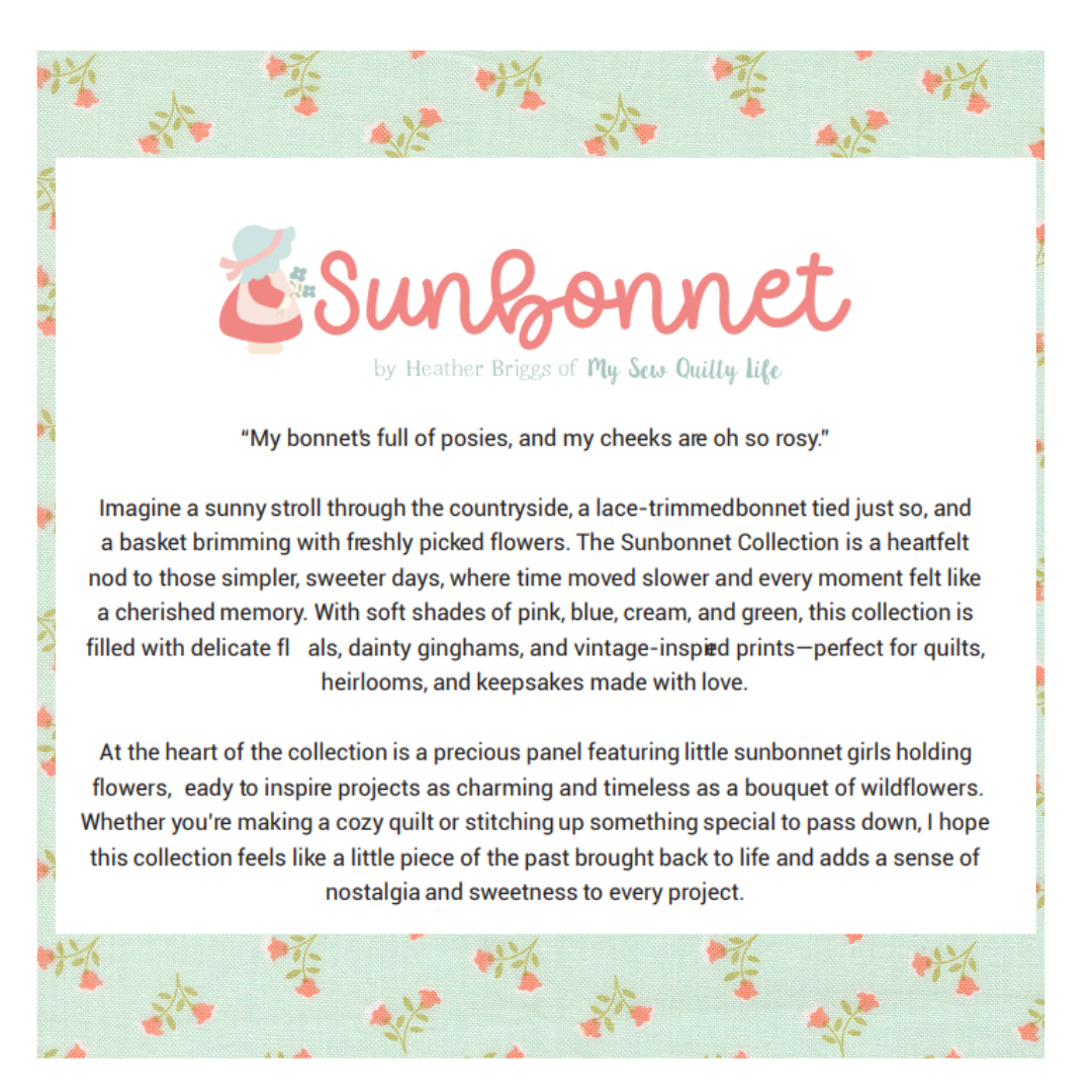 Sunbonnet by Heather Briggs of My Sew Quilty Life for Moda Fabrics, Half Yard and Fat Quarter Bundles (7 fabrics)